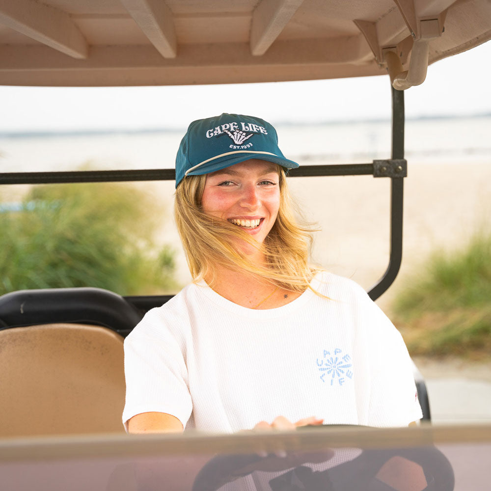 Whether you're catching rays, casting lines, or just vibing with the crew, this ocean-blue snapback flat-brim is your go-to for laid-back style. Featuring bold embroidered “CAPE LIFE” lettering and a skeleton shaka hand for extra beach cred, this cap doesn’t just make a statement—it tells a whole story.